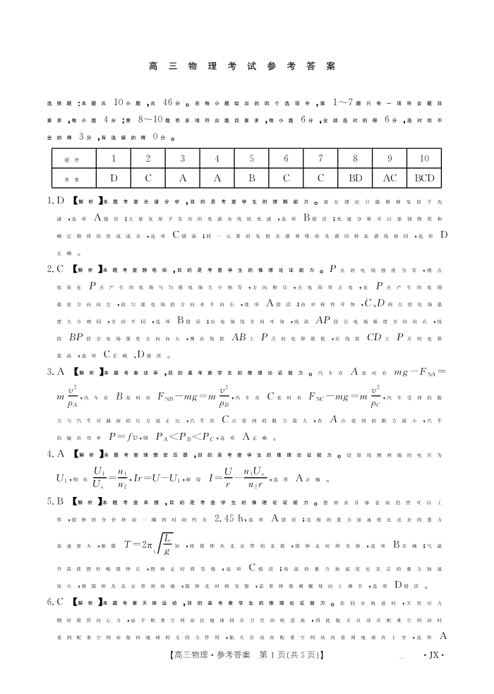 江西省区域高中2024-2025学年下学期3月高三联考物理答案