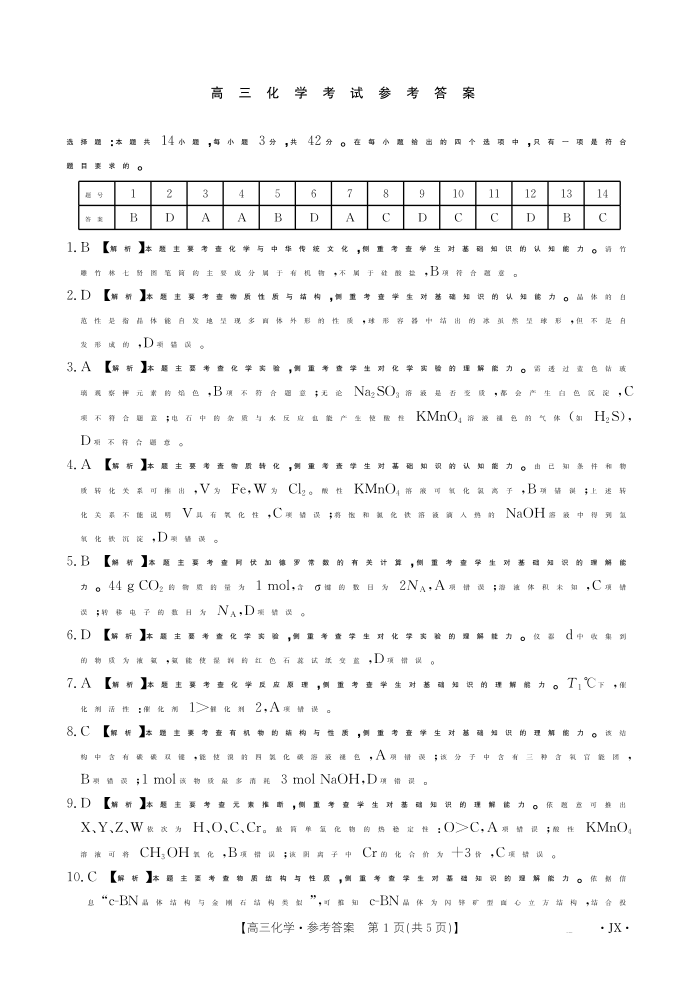 江西省区域高中2024-2025学年下学期3月高三联考化学答案