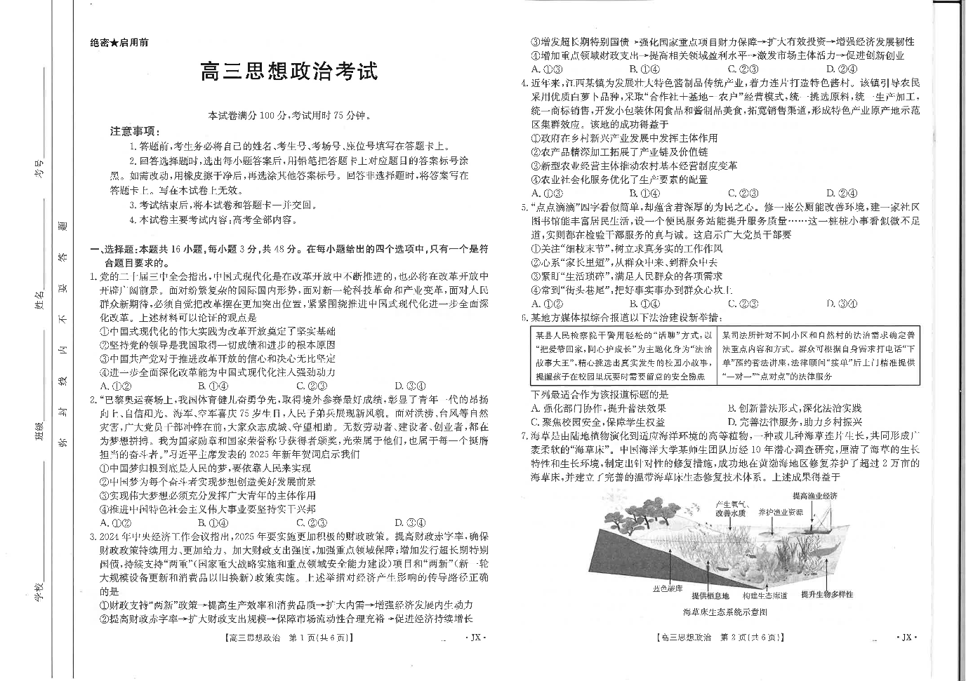 江西省区域高中2024-2025学年下学期3月高三联考政治