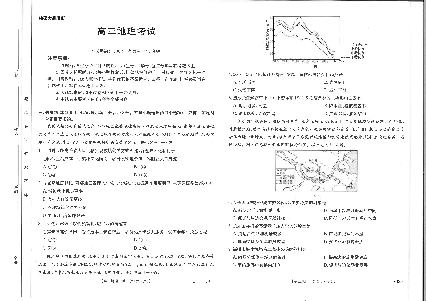 江西省区域高中2024-2025学年下学期3月高三联考地理