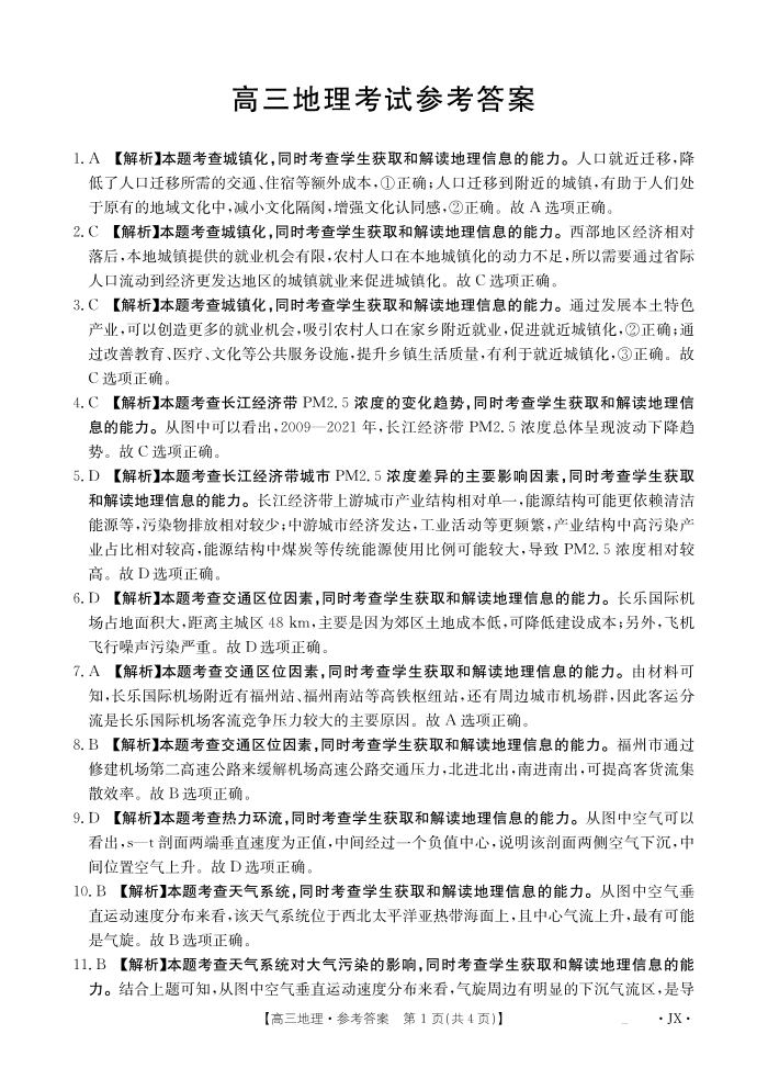 江西省区域高中2024-2025学年下学期3月高三联考地理答案