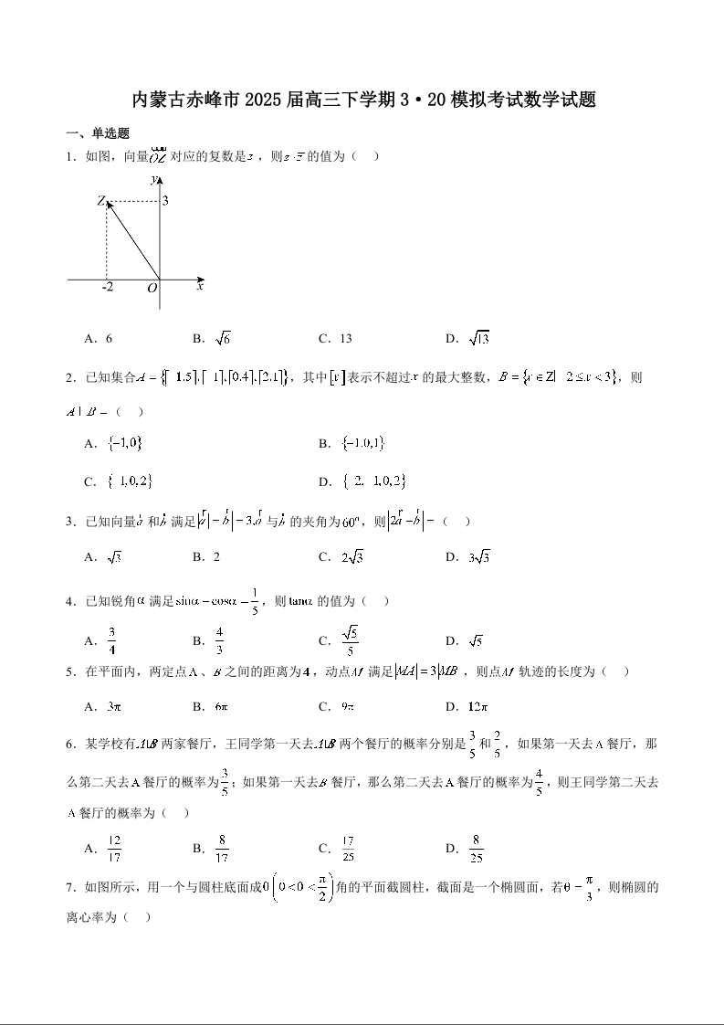 内蒙古赤峰市2024-2025学年下学期3月高三二模考试数学+答案