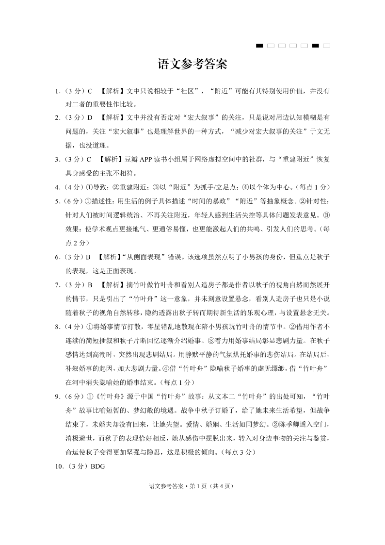 重庆市第八中学2024-2025学年下学期高三适应性月考(六)语文答案