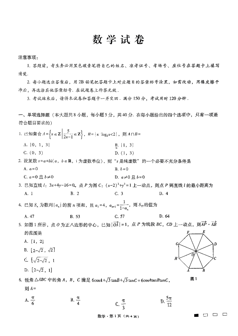 重庆市第八中学2024-2025学年下学期高三适应性月考(六)数学