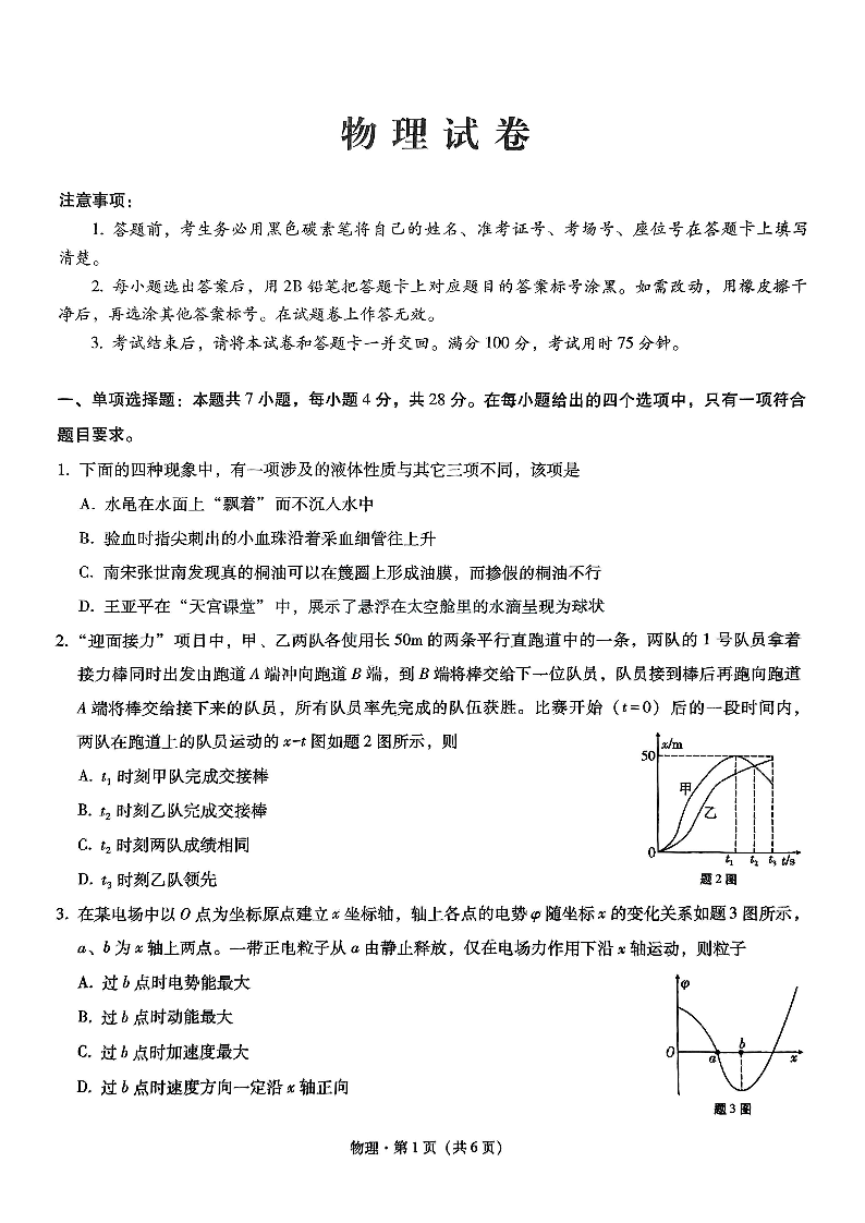 重庆市第八中学2024-2025学年下学期高三适应性月考(六)物理