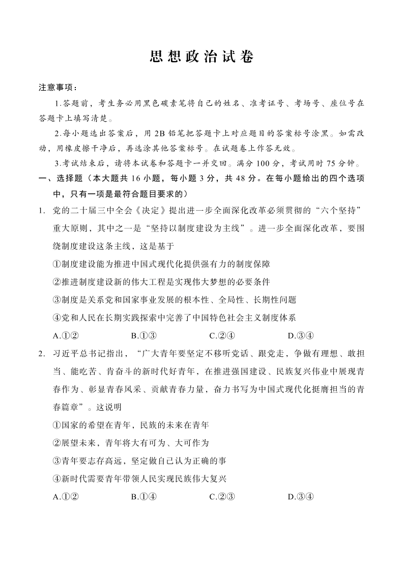 重庆市第八中学2024-2025学年下学期高三适应性月考(六)政治