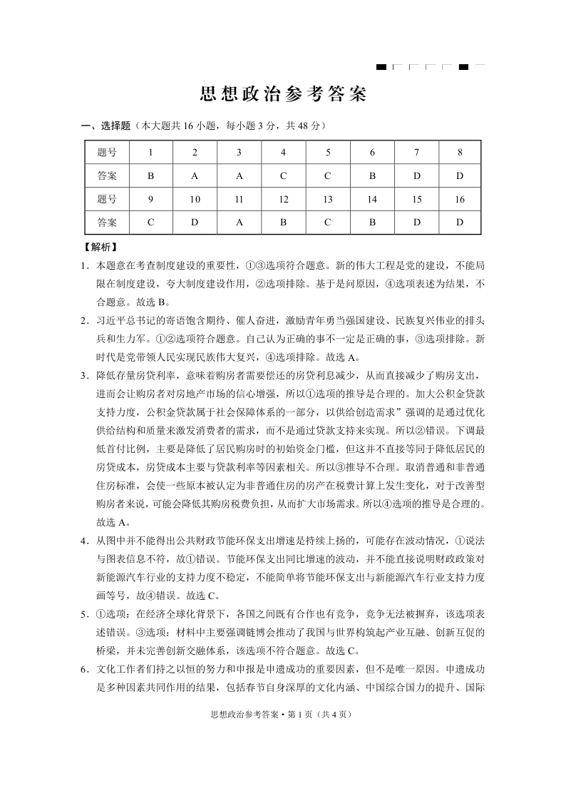 重庆市第八中学2024-2025学年下学期高三适应性月考(六)政治答案