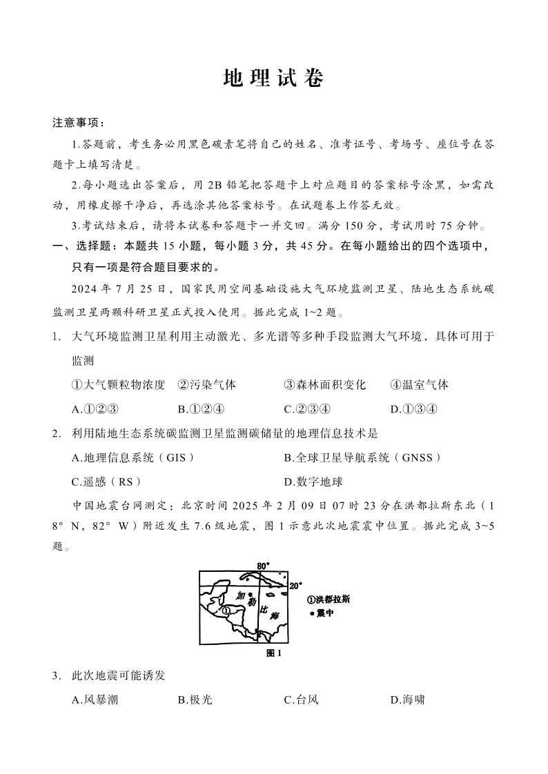 重庆市第八中学2024-2025学年下学期高三适应性月考(六)地理