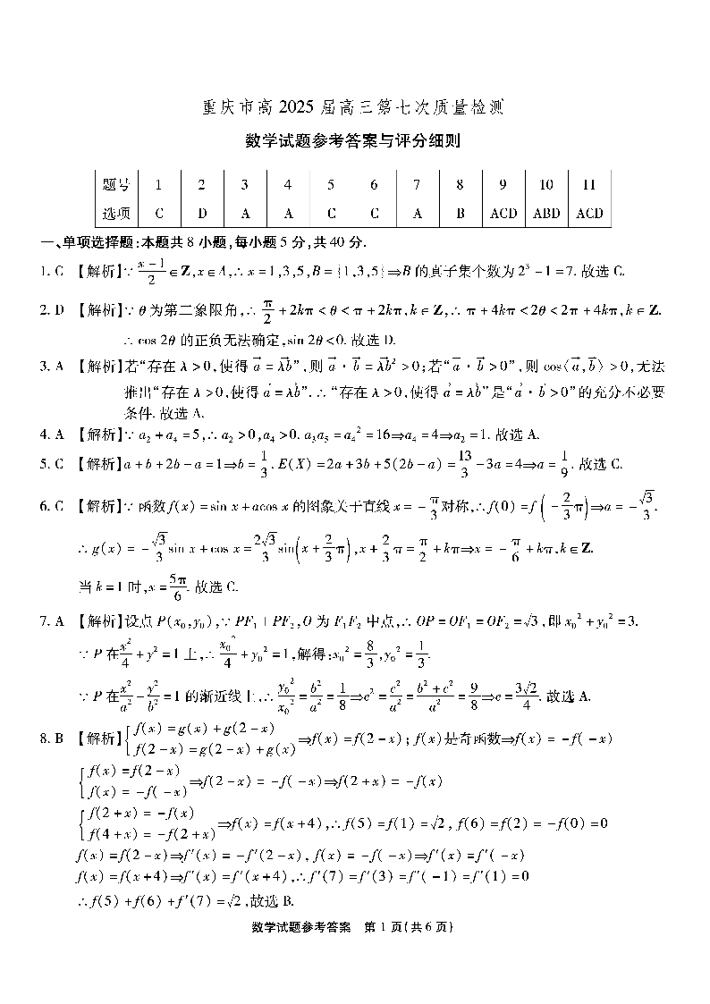 重庆市南开中学2024-2025学年下学期高三第七次质量检测数学答案