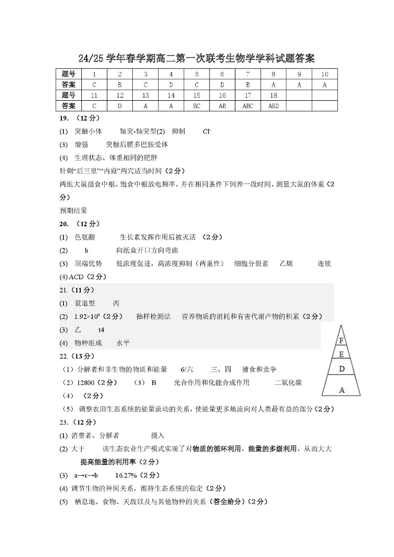 江苏省盐城市五校2024-2025学年下学期3月高二第一次联考生物学答案