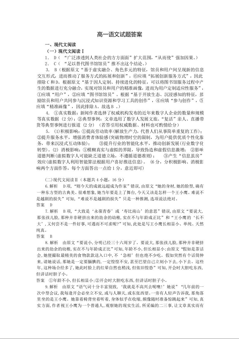 湖北省随州市部分高中2024-2025学年下学期3月高一联考语文答案