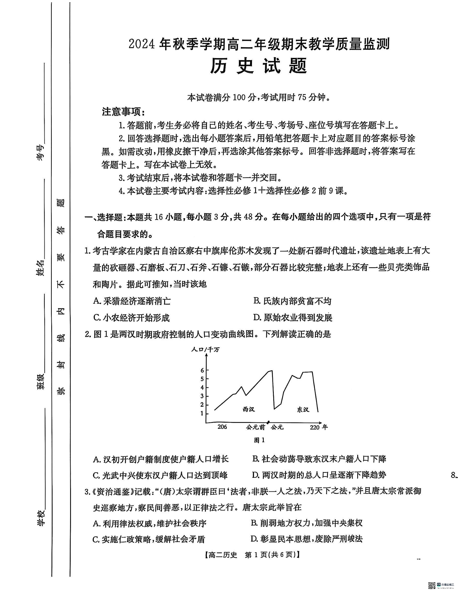 广西壮族自治区崇左市2024-2025学年上学期1月高二期末考试历史