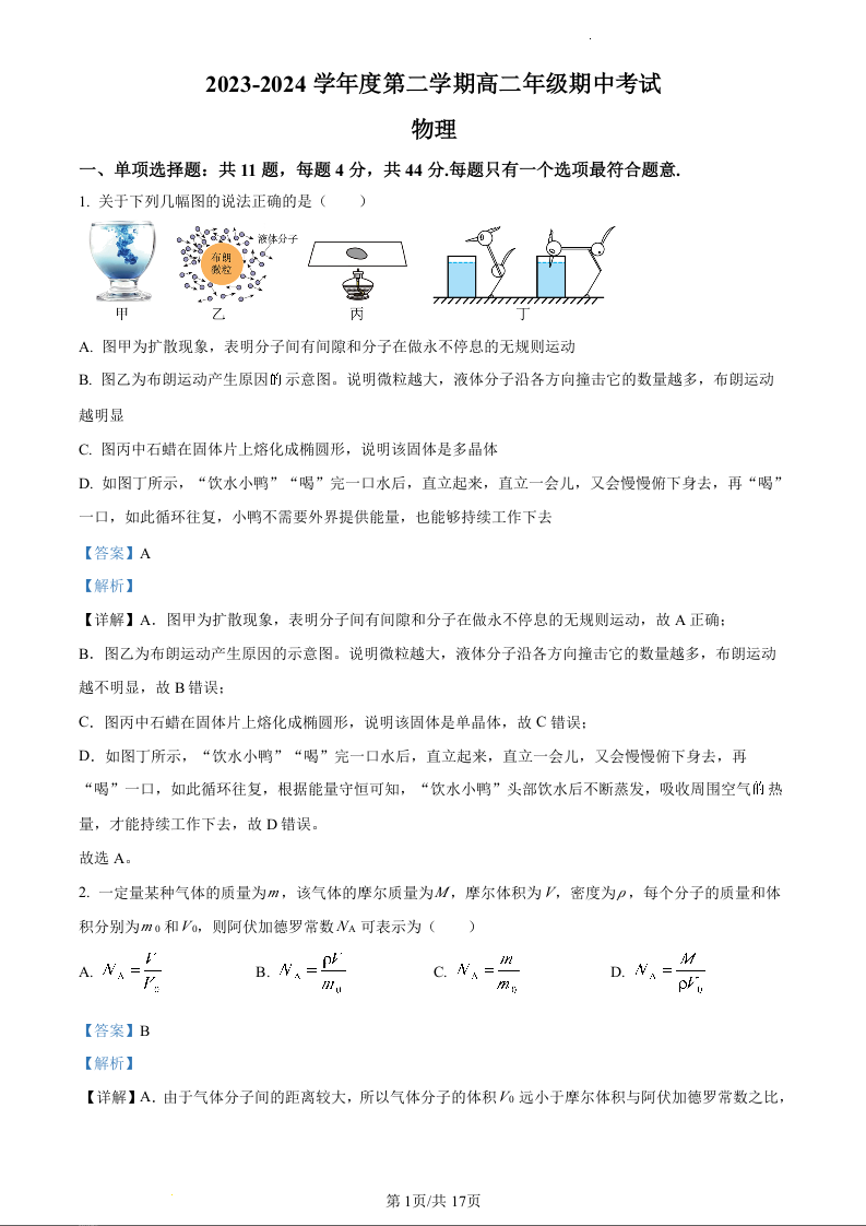 江苏省南通市海安高级中学2023-2024学年高二下学期期中考试物理(精品解析版)