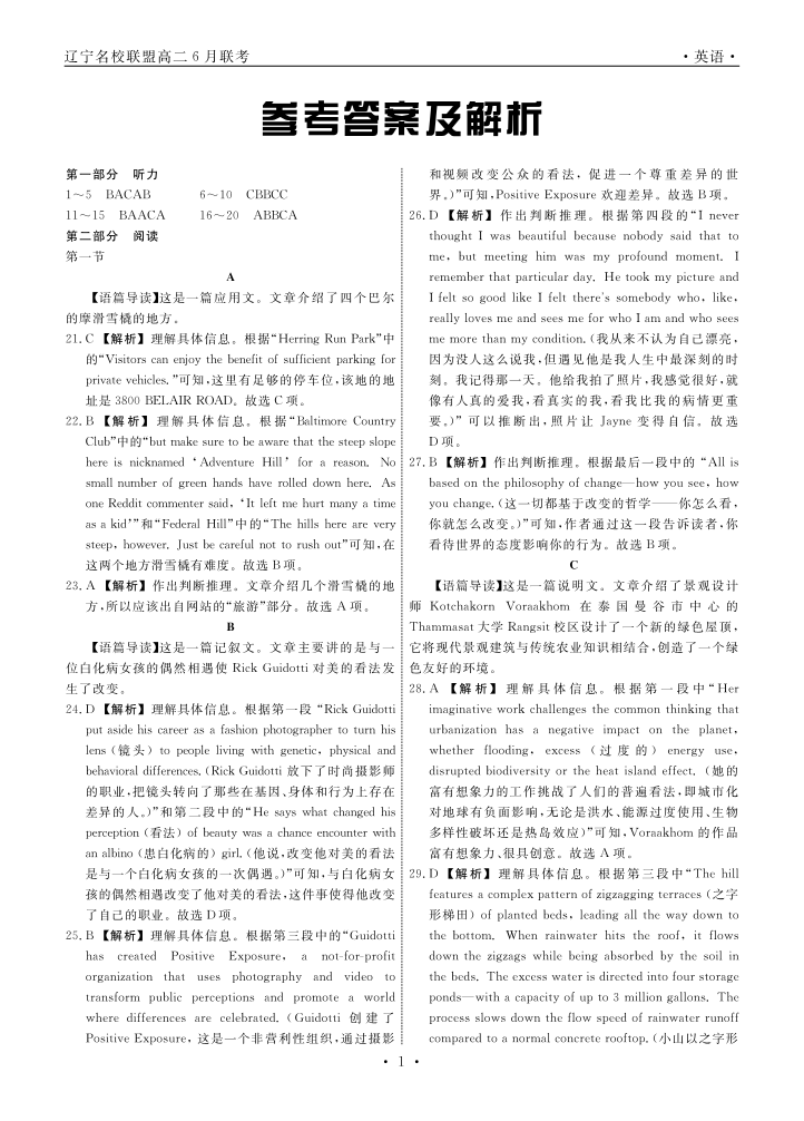 辽宁省名校联盟2023-2024学年高二下学期6月月考英语答案