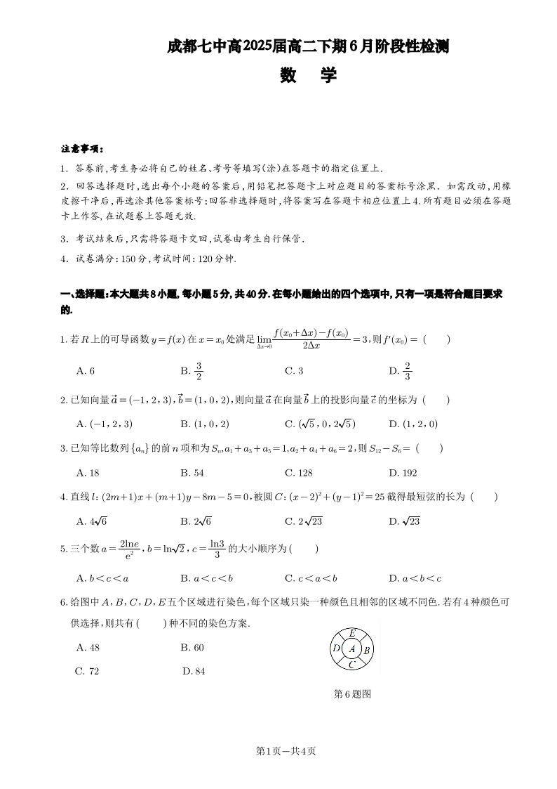 四川省成都市第七中学2023-2024学年高二下学期6月月考数学