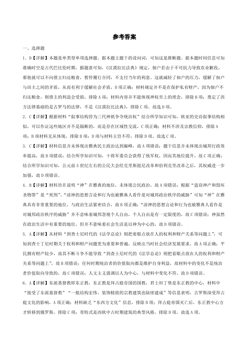 四川省成都市第七中学2023-2024学年高二下学期6月月考历史答案