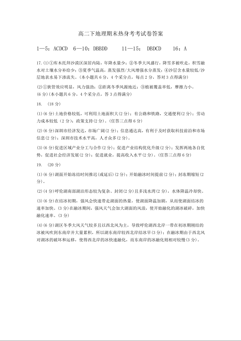 四川省绵阳市南山中学高2025届下学期期末考试地理答案