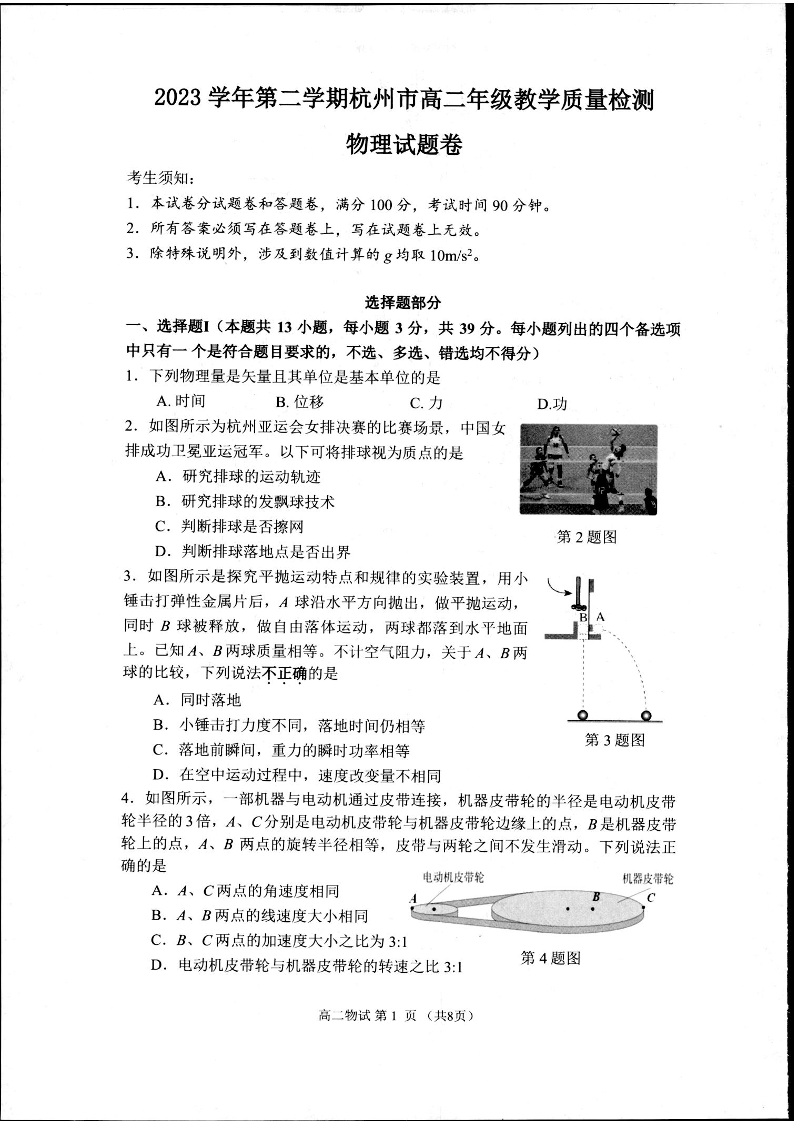 浙江省杭州市2025届高二下学期6月期末考试物理