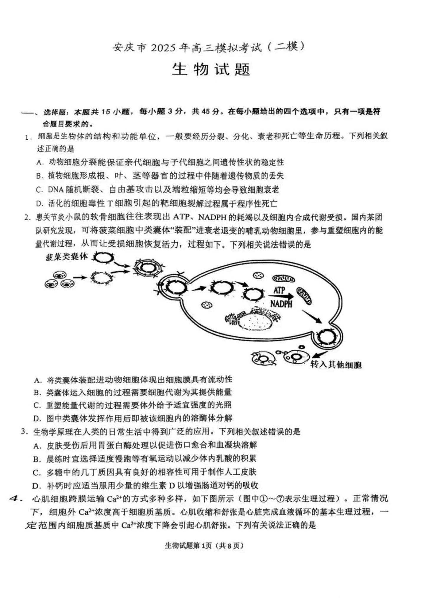 安徽省安庆市2025届高三第二次模拟(安庆二模)生物