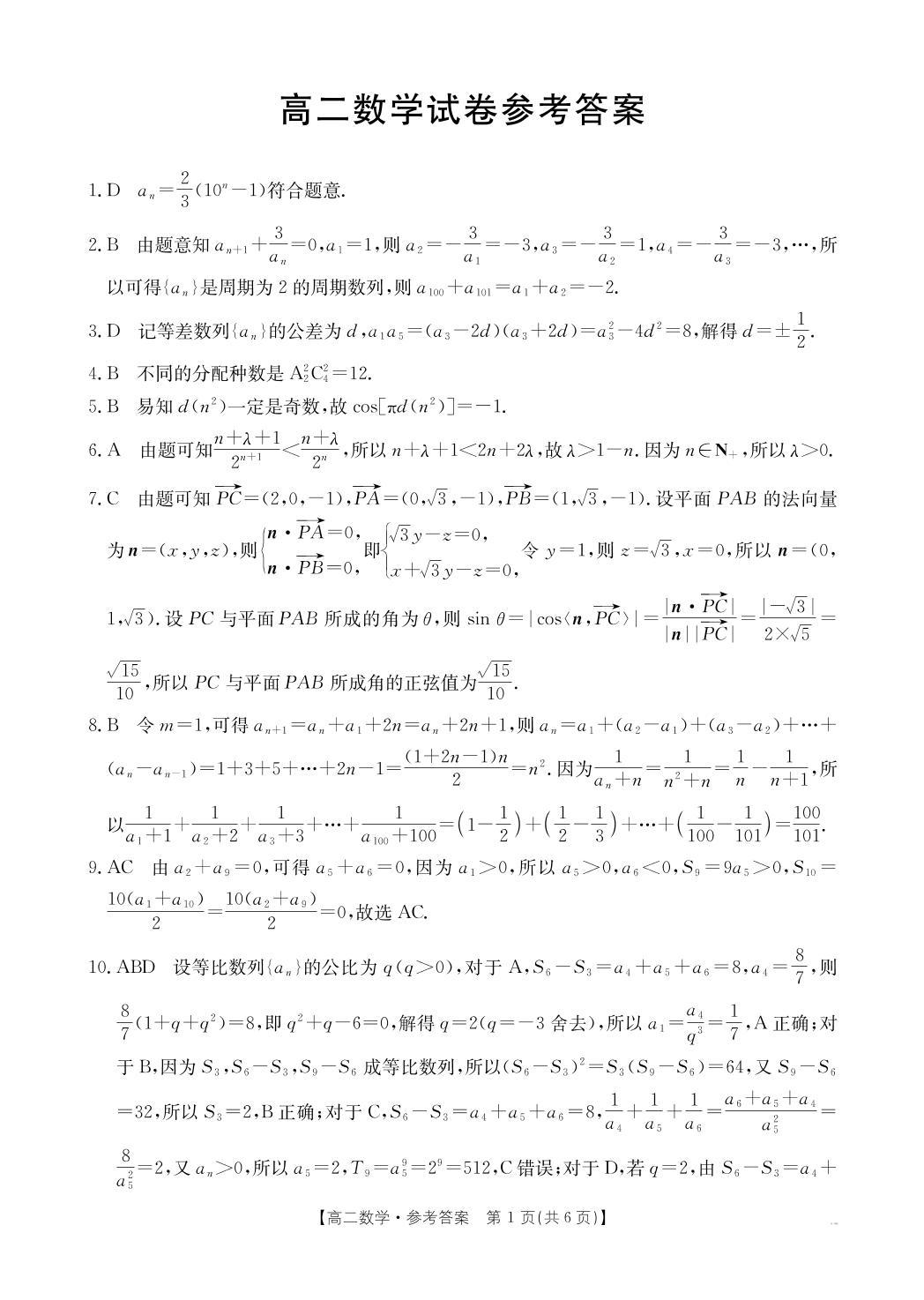 江西省部分学校2024-2025学年下学期3月高二联考数学答案