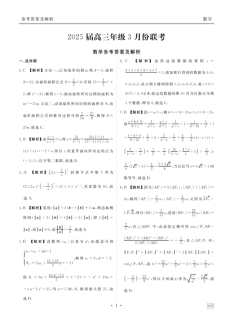 广东省衡水金卷2024-2025学年下学期3月高三大联考数学答案