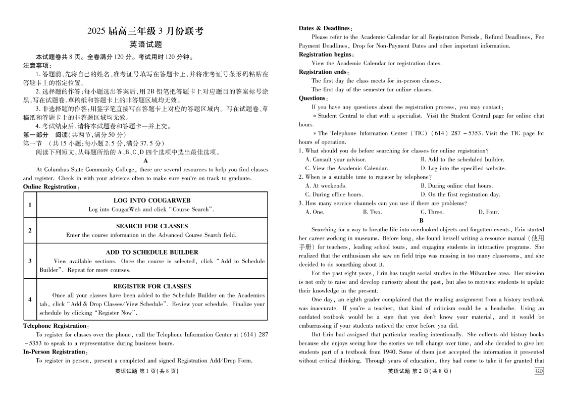广东省衡水金卷2024-2025学年下学期3月高三大联考英语