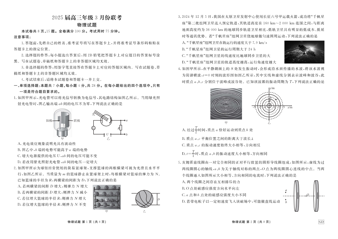 广东省衡水金卷2024-2025学年下学期3月高三大联考物理