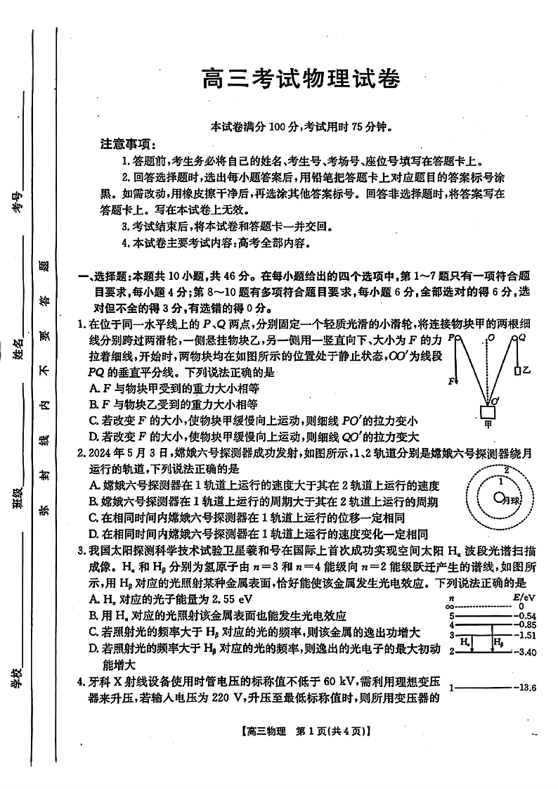贵州省黔东南州2024-2025学年下学期3月高三模拟统测物理+答案
