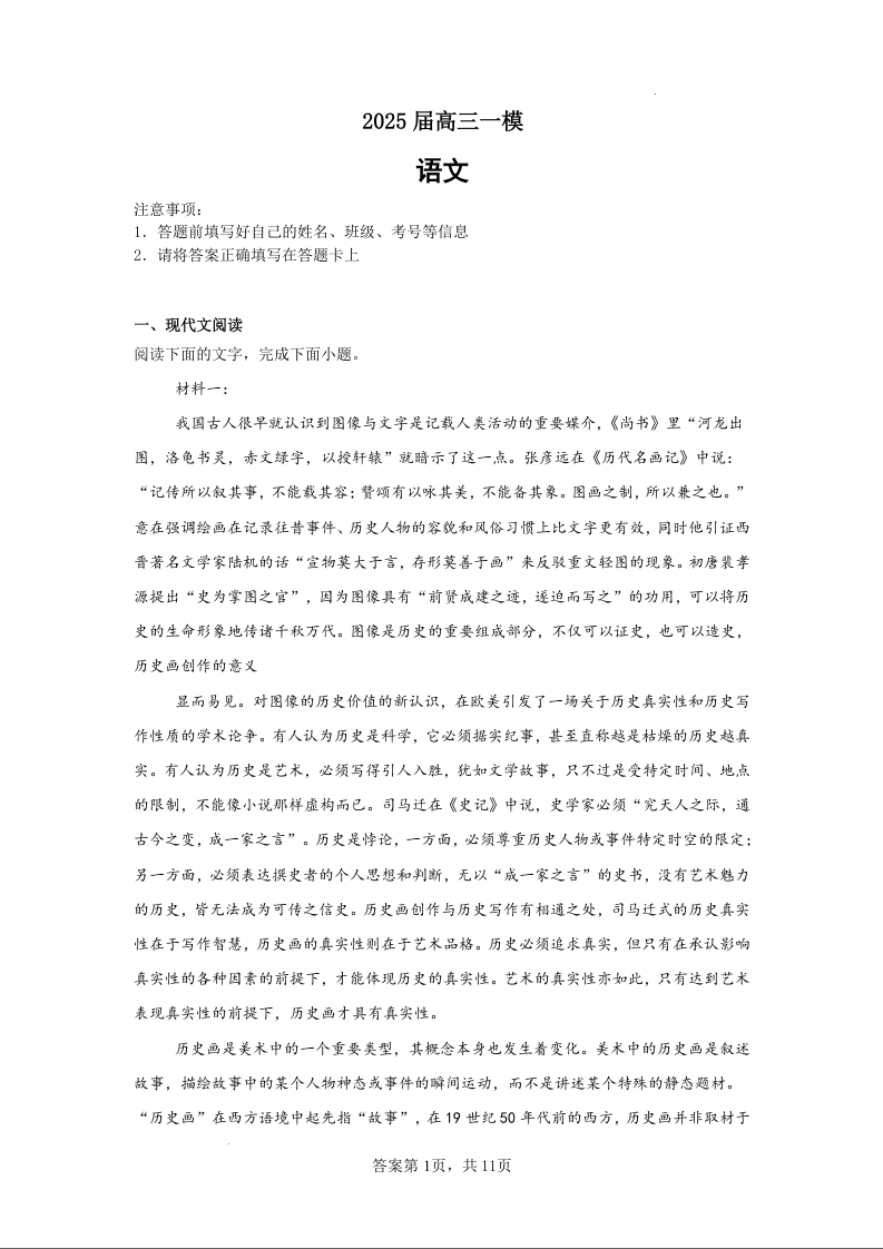 湖南省长沙市望城区一中2024-2025学年下学期3月高三一模语文