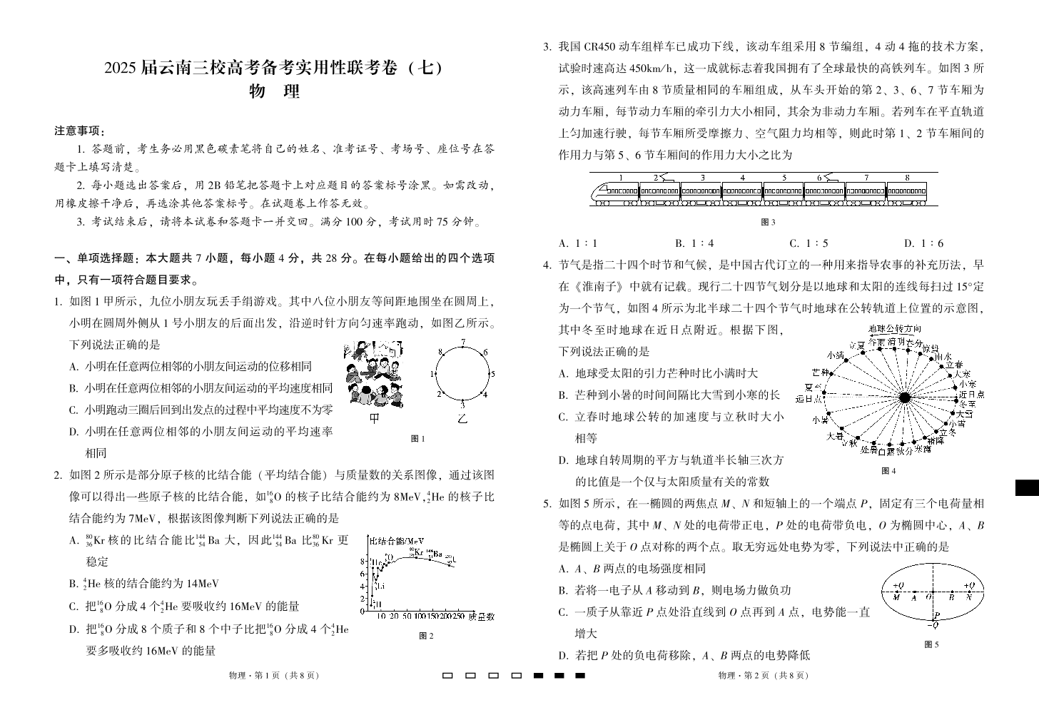 云南省三校2024-2025学年下学期3月高三备考实用性联考(七)物理