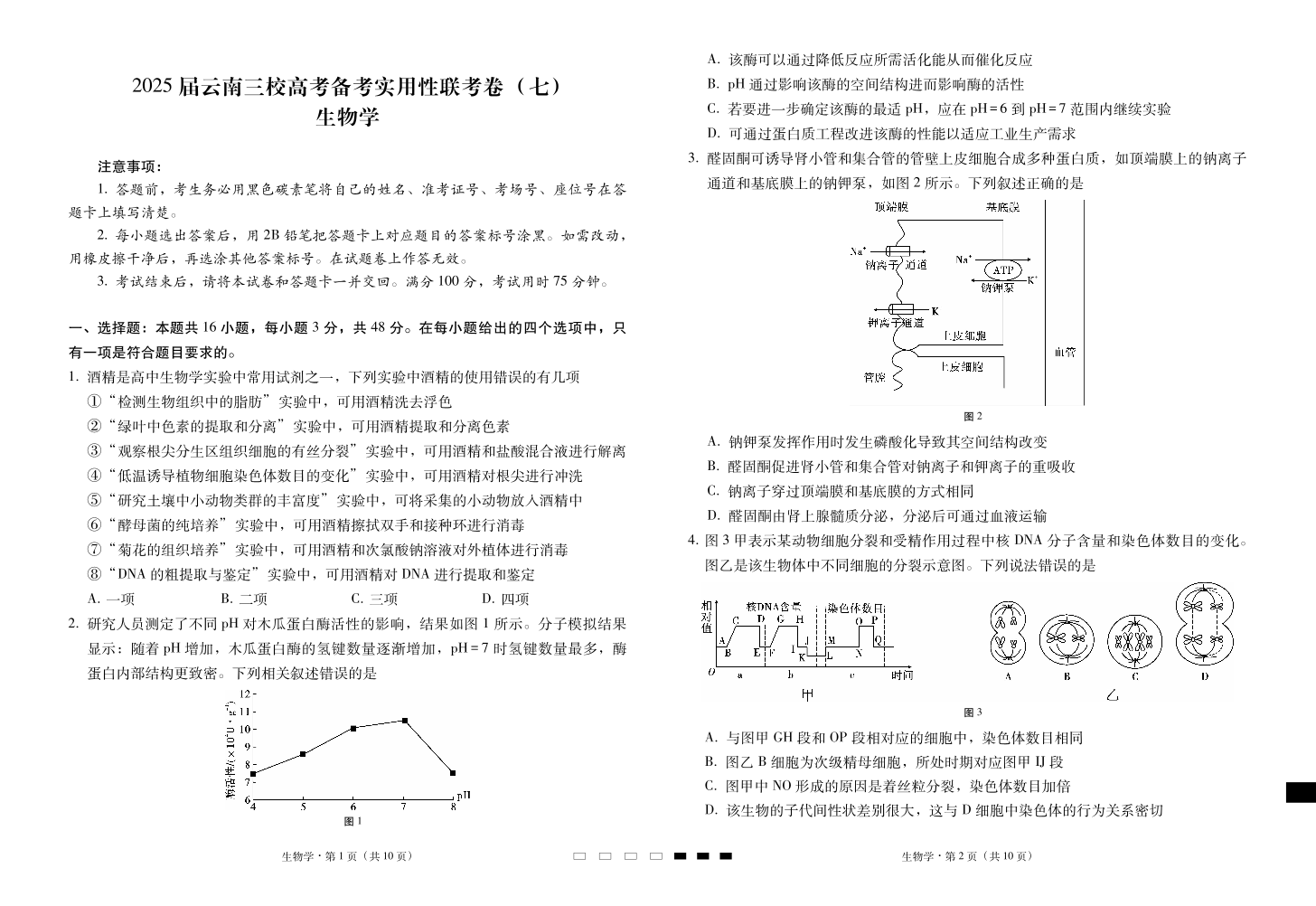 云南省三校2024-2025学年下学期3月高三备考实用性联考(七)生物