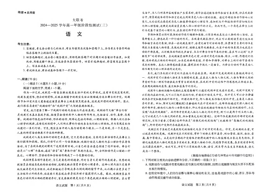 河南省创新发展联盟2024-2025学年下学期3月高一月考语文