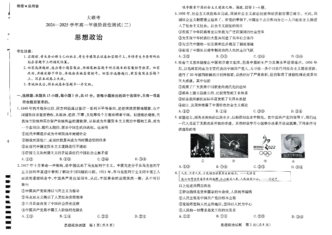 河南省创新发展联盟2024-2025学年下学期3月高一月考政治