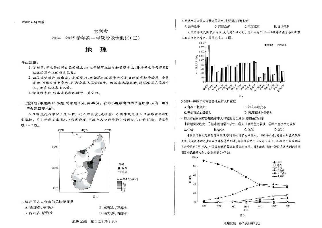 河南省创新发展联盟2024-2025学年下学期3月高一月考地理