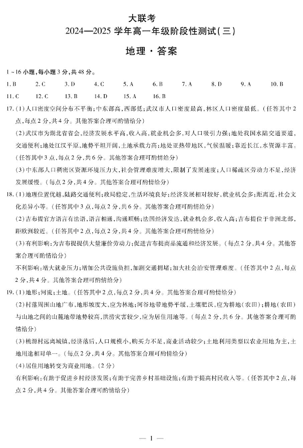 河南省创新发展联盟2024-2025学年下学期3月高一月考地理答案