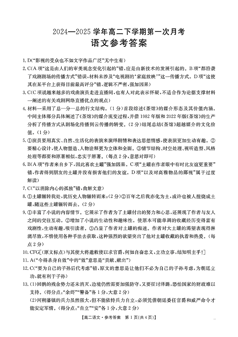 河南省洛阳市创新发展联盟2024-2025学年下学期高二第一次月考语文答案