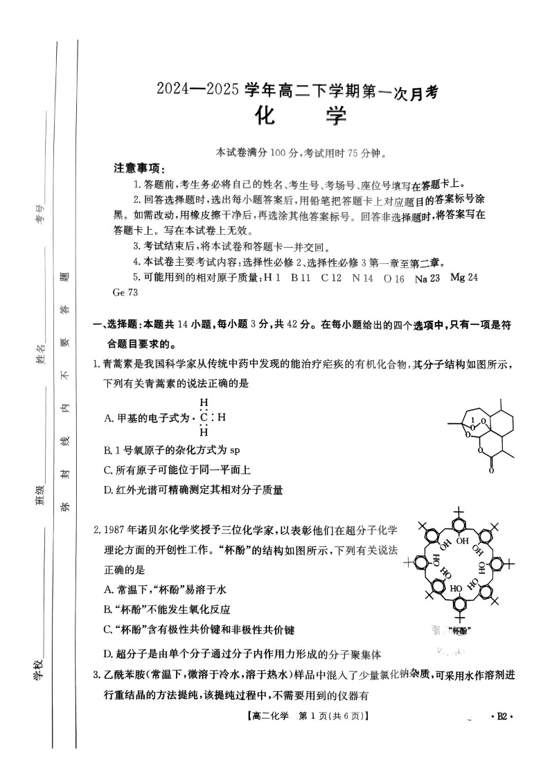 河南省洛阳市创新发展联盟2024-2025学年下学期高二第一次月考化学+答案