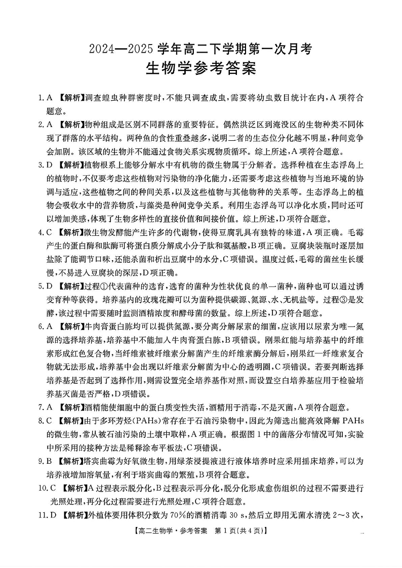 河南省洛阳市创新发展联盟2024-2025学年下学期高二第一次月考生物答案