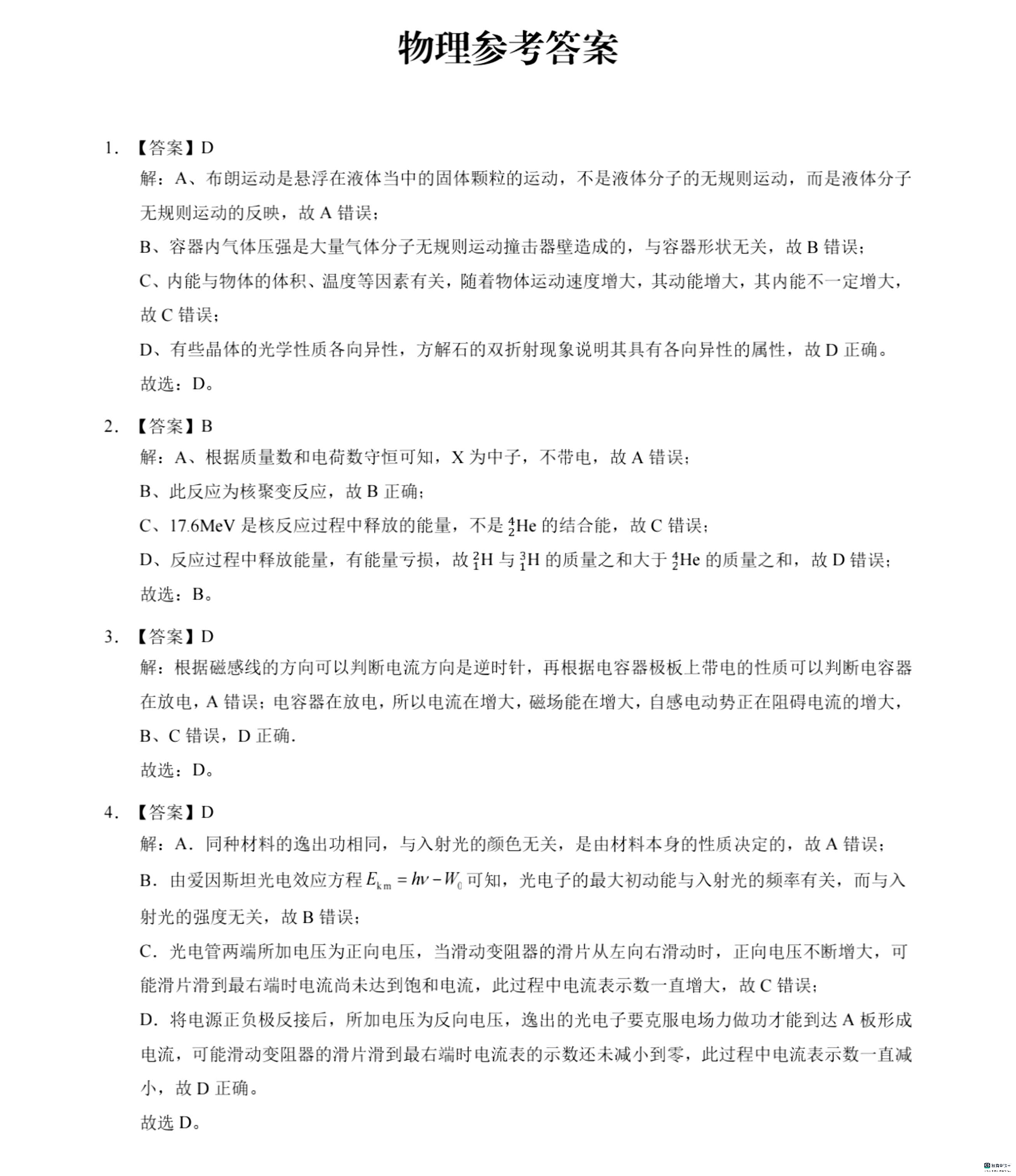 安徽省省十联考高2025届下学期7月期末考试物理答案