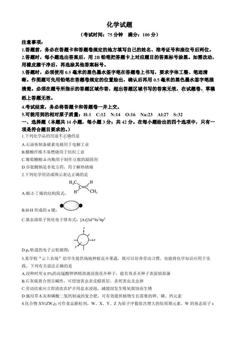 安徽省省十联考高2025届下学期7月期末考试化学+答案