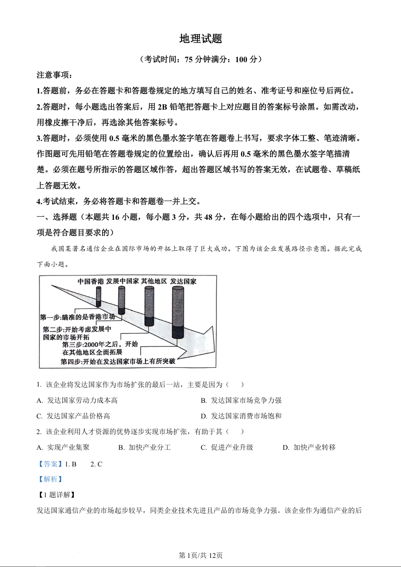 安徽省省十联考高2025届下学期7月期末考试地理(精品解析版)