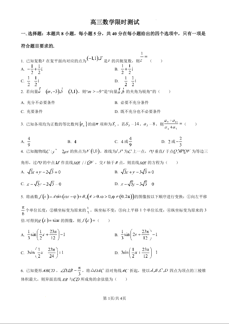 湖北省华中师大一附中2024-2025学年下学期3月高三限时训练数学(原卷版)
