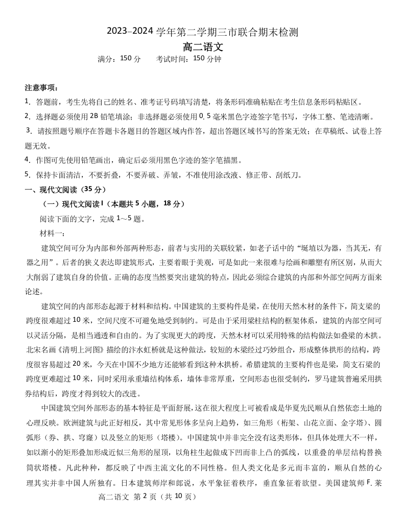 安徽省县中联盟(三市联合)2025届下学期7月期末检测语文