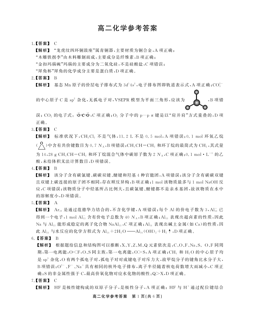 安徽省县中联盟(三市联合)2025届下学期7月期末检测化学答案