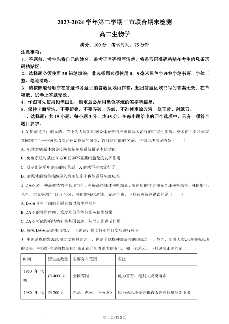 安徽省县中联盟(三市联合)2025届下学期7月期末检测生物(原卷版)