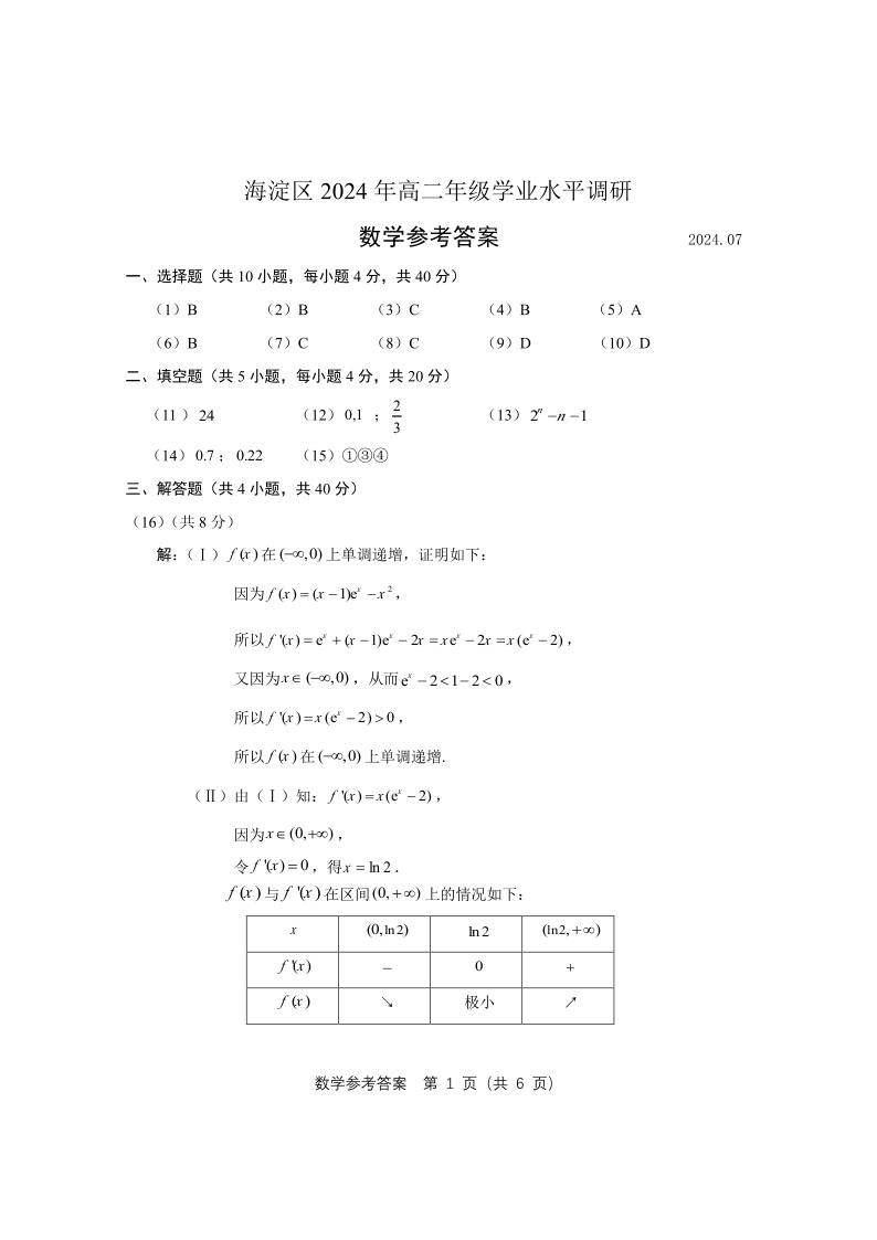 北京市海淀区高2025届下学期7月期末考试数学答案