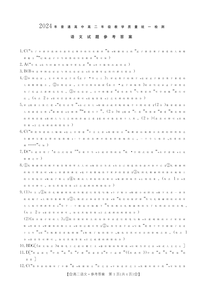 甘肃省普通高中高2025届下学期期末教学质量统一检测语文答案