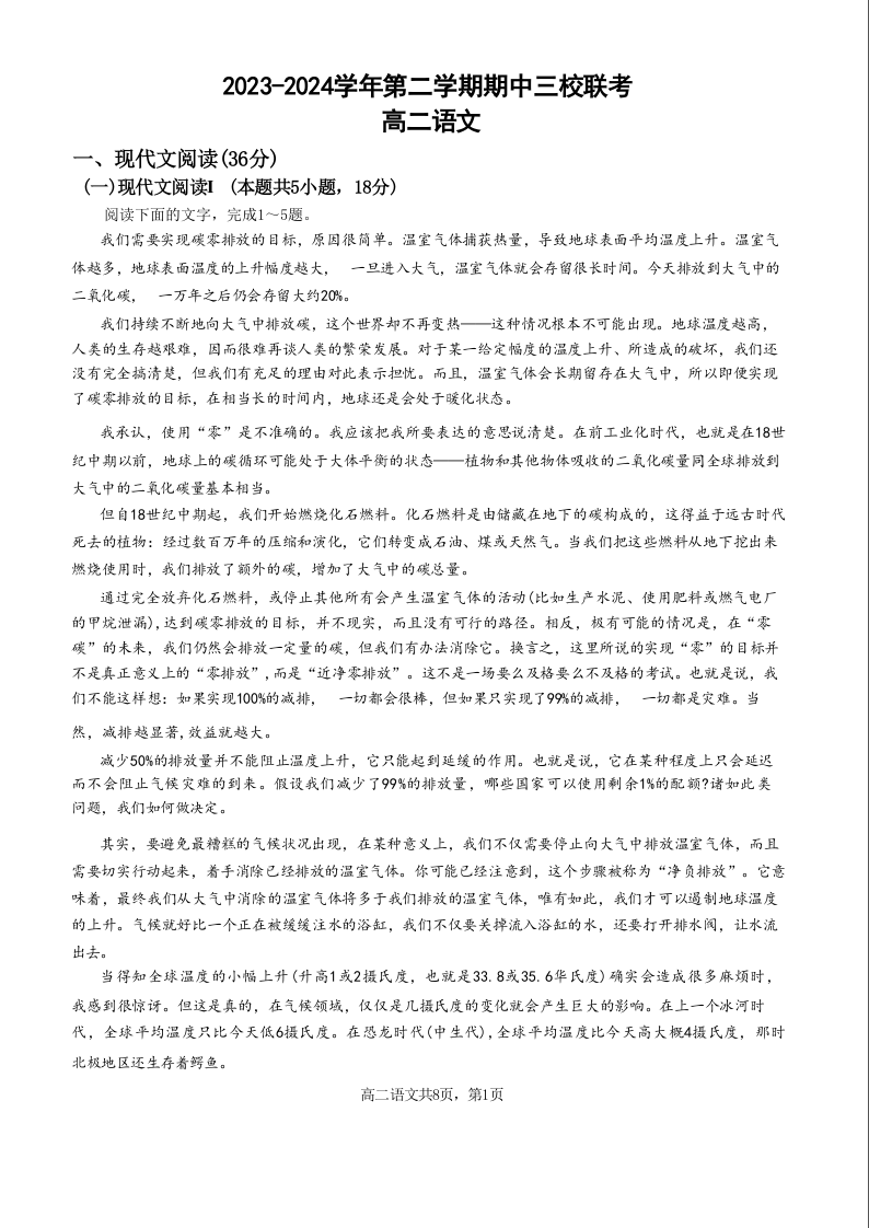 广东省广州三校(广铁一中、广州外国语学校、广州大学附属中学)2025届下学期期末考试语文+答案