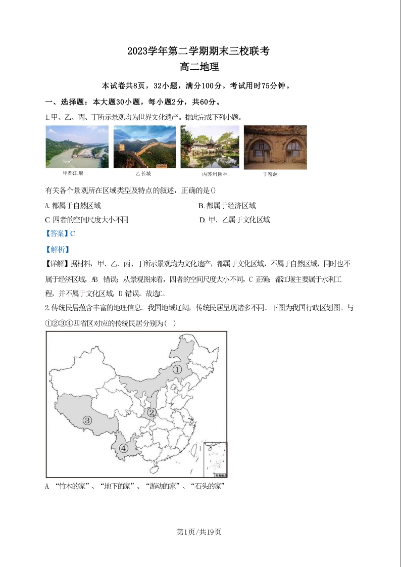 广东省广州三校(广铁一中、广州外国语学校、广州大学附属中学)2025届下学期期末考试地理+答案