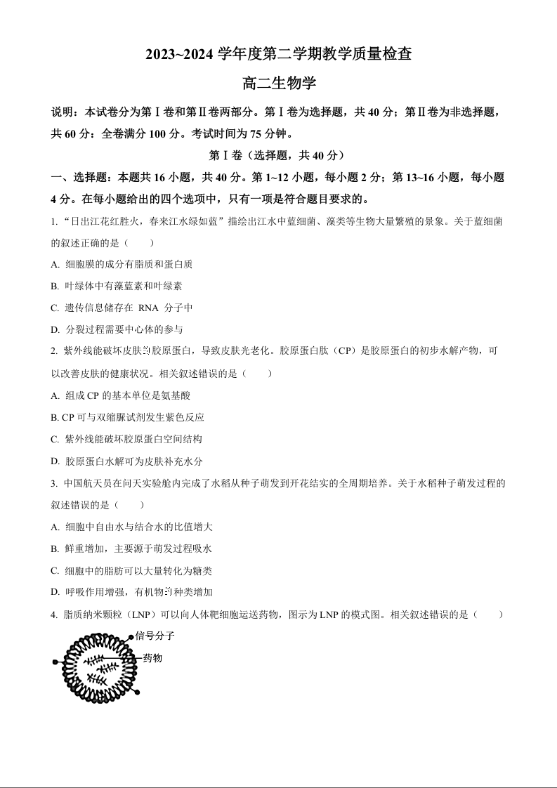 广东省东莞市高2025届下学期7月期末考试生物+答案